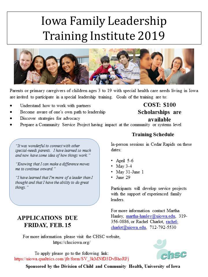 2019 Iowa Family Leadership Training Institute Flyer